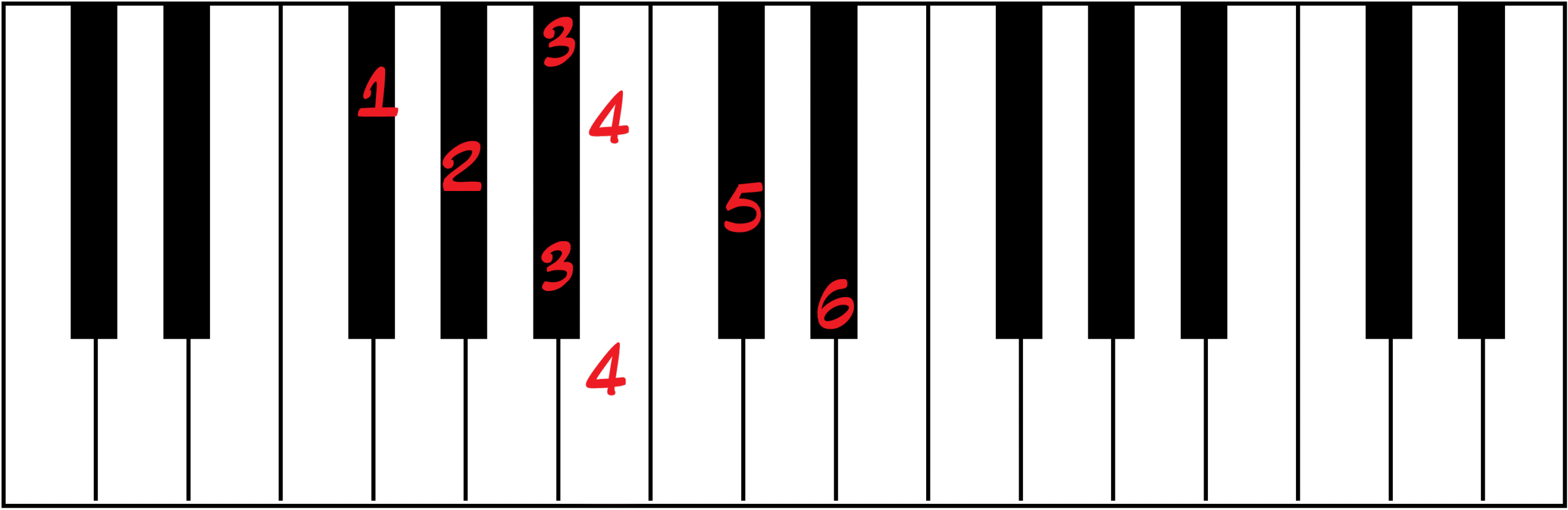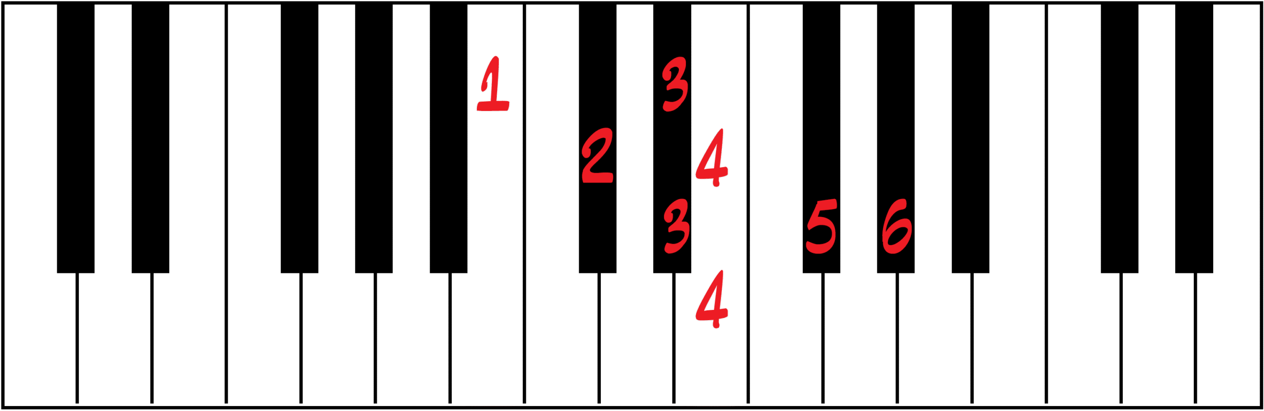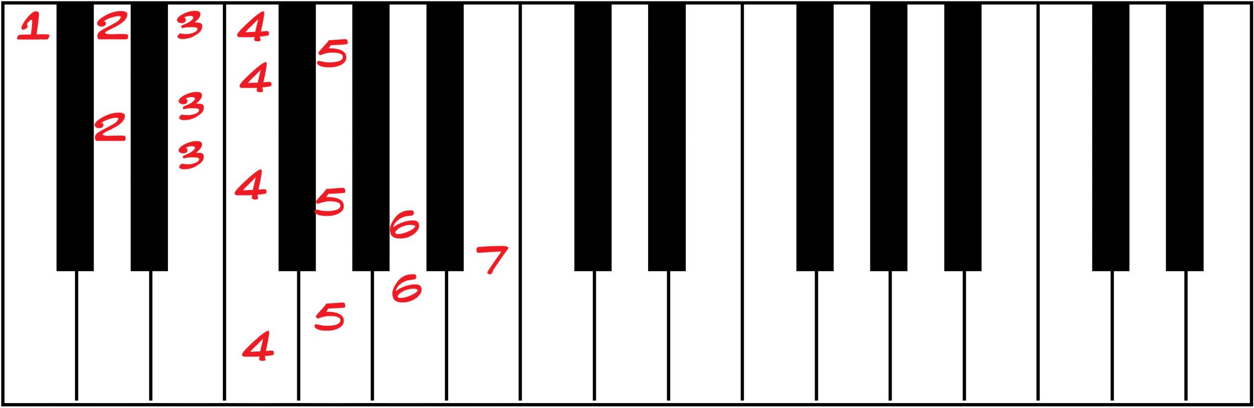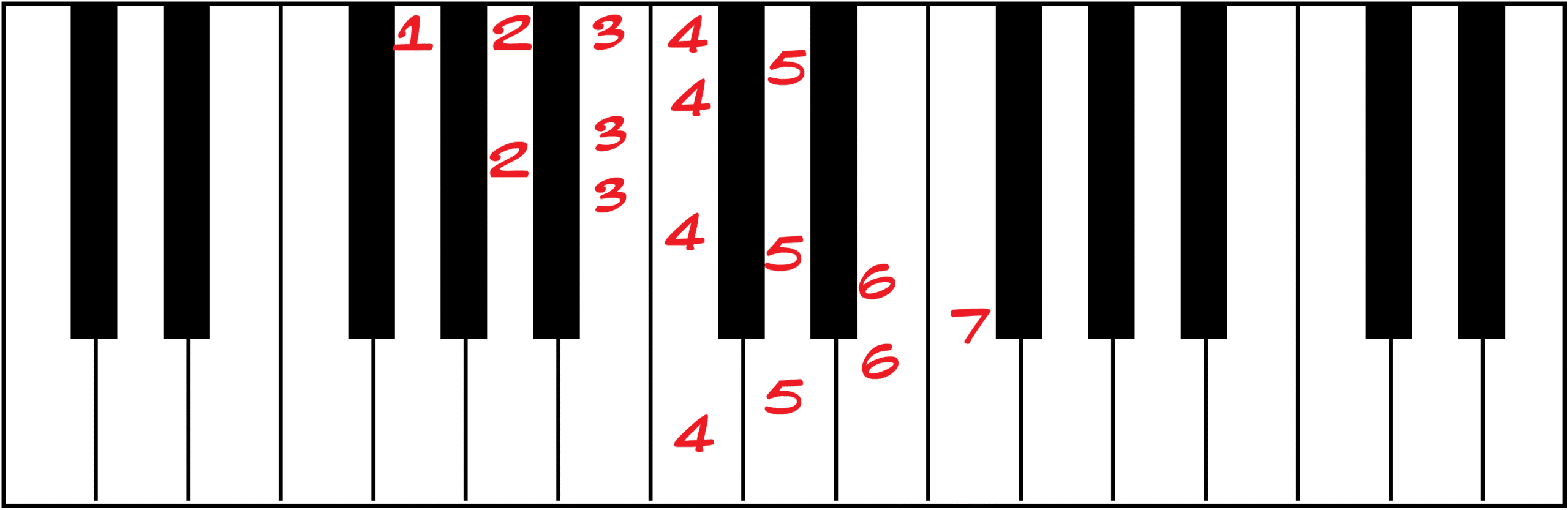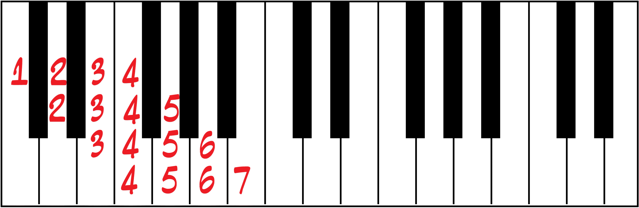 Ćwicz w całej skali instrumentu, ale także w „miejscu” – w jak najmniejszej rozpiętości (zakładaj sobie np., że nie przekroczysz kwinty). Ogrywaj różne akordy skalami używając tylko jednej reki: lewej (bez prawej) lub tylko prawej.